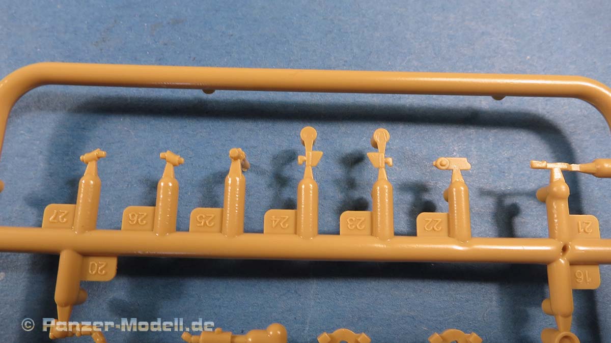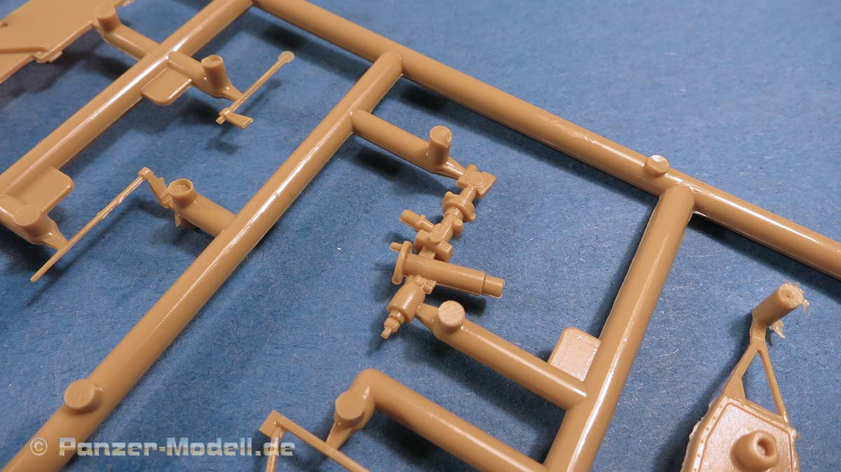 Der Guss der Teile ist gut, feine Details und vor allem saubere Teile ohne Ausflüsse oder Formversatz Die Angüsse sind relativ human in Anzahl und Größe.