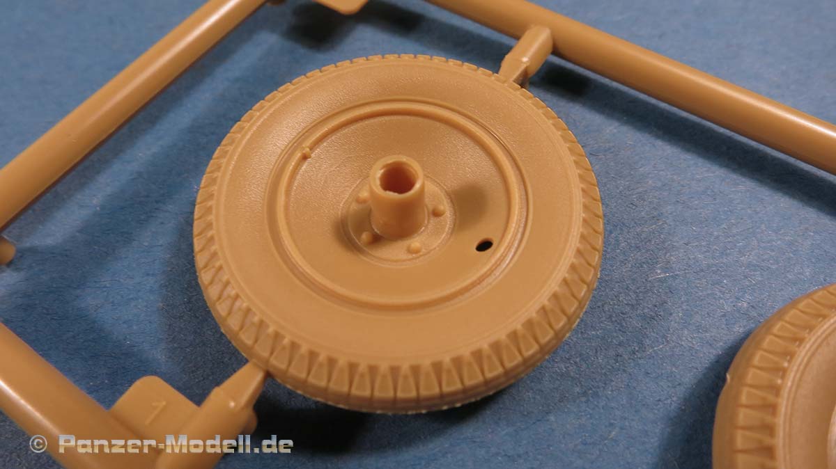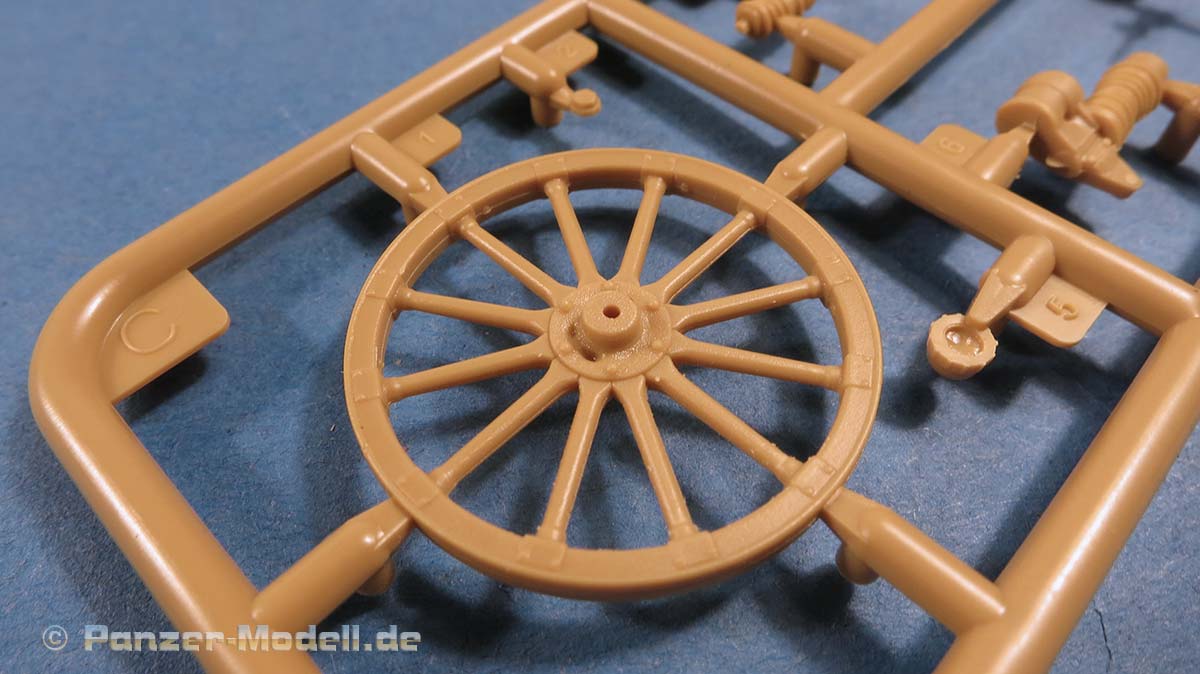 Besonders zu gefallen weiß, dass Vision diesem Geschütz zwei Sorten an Rädern beigelegt hat - einmal Gummireifen, einmal Speichenräder. Beide sehen sehr gut aus und sind fein sauber mit schönen Details gespritzt, dies gilt insbesondere für das Profil der Gummireifen.