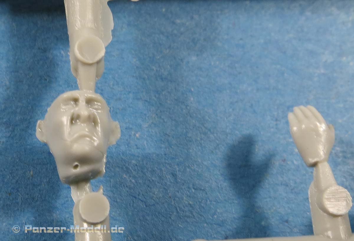 Auch die Figuren machen einen guten Eindruck mit recht sauberen und klaren Detail, sowie einem schönen Faltenwurf der Uniform. Beim vorliegenden Muster hat sich am Hals der einen Figur leider eine recht tiefe Sinkstelle gefunden.