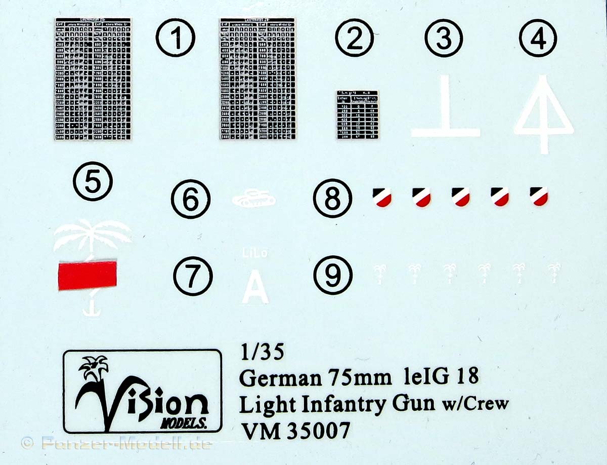 Unter der Nummer 35007 gibt es von Vision Models den Bausatz German 75mm LeIG 18 Leichtes Infantriegeschütz .