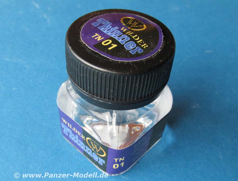 Der Verdünner eignet sich prinzipiell für alles auf Emaillefarbenbasis, ist aber speziell zugeschnitte auf die Verwendung um die Produkte (Washings, etc) der Nitro Line zu verdünnen, am Modell zu modifizieren oder auch die Pigmente aus dem Wilder Sortiment zu lösen und feucht aufzutragen.