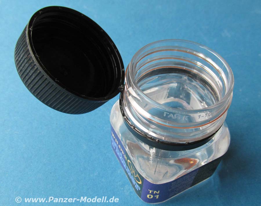 Diese Produkte kommen, wie auch der hier vorliegende Verdünner im schönen großen 50ml Schraubdeckelgefäß aus Plastik. Damit ist es relativ bruchsicher und immer wieder gut verschließbar.