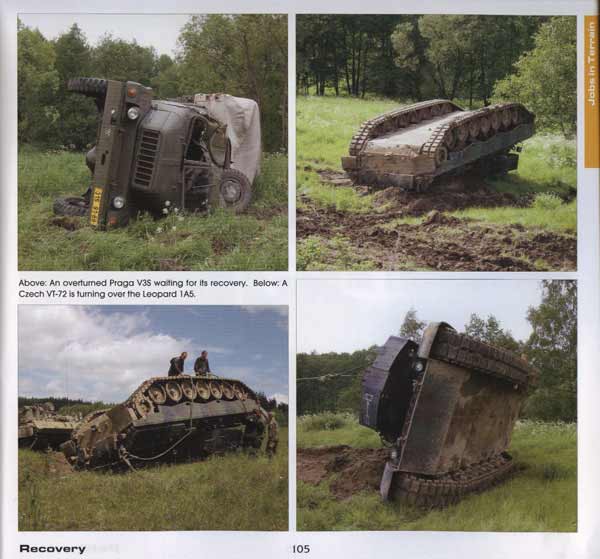 Desweiteren werden ausgebaute Motoren gezeigt, Feldlager, Wasserpumpen und deren Tanks und Einsatzfotos der Übung mit den Disziplinen abschleppen, verladen (LKW und Bahn) und bergen. Spektakulär hierbei der Leopard 1 A5, der auf den Kopf geworfen wurde und wieder zu bergen war!