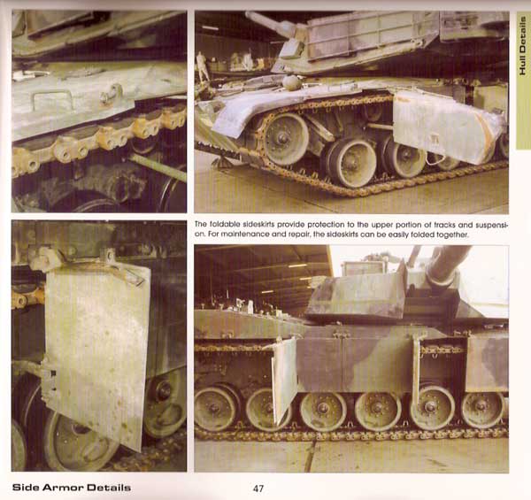 Gezeigt werden dazu Detailansichten vom Turm aus allen Blickwinkeln, die Luken, Waffenanlage, APU, Staukörbe, MG Lafette, Fahrerplatz, Motorlüfter, Beeuchtungsanlage, Tankstutzen, seitenschürzen, Kette, Laufrollen, Antriebsräder, Motor und Motorraum, Minenpflug, usw.