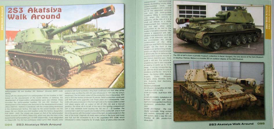 Dieses neue Heft mit 108 Seiten erfreut wieder durch durchweg farbige, teils seitenfüllende und mitunter spektakuläre Fotos, die diese Haubitzen in schönen Gesamtansichten und Details. Auch die gezogenen Geschütze D20 und D30 werden mit Bild und Text vorgestellt. Hier kommt nicht nur der Modellbauer, sondern auch der Waffensysteminteressierte auf seine Kosten! Wie bei dieser Heftserie üblich wird nach den allgemeinen Fotos ins Detail gegangen und die Panzer und Geschütze werden intensiv unter die Lupe genommen. Jedes Detail ist gut festgehalten und erläutert und das geht rund herum inklusive Innenräume, Motor und Getriebe. Ein hervorragender Bildband, der durch gute Allgemeininformationen und extreme Detailfotos besticht. Wer an diesen Waffensystemen interessiert ist wird hier nicht dran vorbeikommen. Der Kaufpreis beträgt ca. 28,- EUR. Gvozdika & Akatsiya in detail |