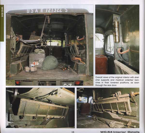 Auf den ersten 23 Seiten wird auf den WC54 Ambulance eingegangen - ein paar schöne Gesamtansichten stimmen auf die Detailorgie die folgt ein. Es gibt eigentlich kein Winkel der unbeachtet bleibt, seien es Sachen wie der Fahrwerksrahmen, der Tankstutzen, Reserverad, Türgriffe, Spiegelhalter, Armaturen oder auch das Innere des Handschuhfachs ... die Detailauswahl ist umwerfend. Sogar Fotos von einem Fahrzeug mit ausgebautem Motor und Verkleidung sind zu sehen, was noch wichtige Details freilegt.