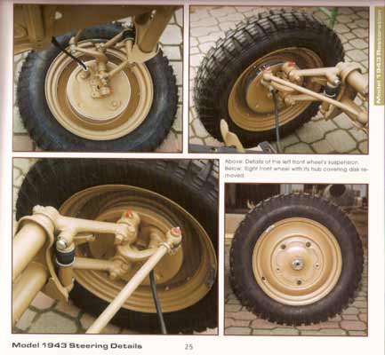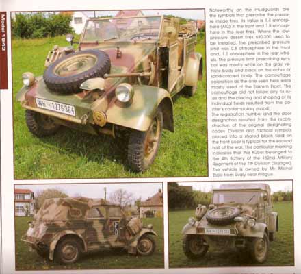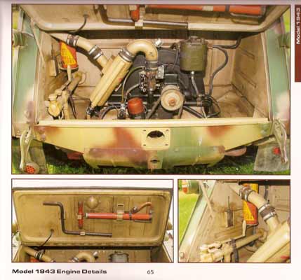 Es folgen dann 33 Seiten die in Gesamt und ausführlichen Detailansichten jeden Winkel der Kübelwagenmodelle von 1943 zeigen. Dabei wird nichts ausgespart und alle Bildersets werden mit ausreichend Text erläutert. Wer einen akkuraten Kübelwagen bauen will und auch vor Detailarbeiten nicht zurückschreckt, kommt an diesen Fotos nicht vorbei, seien es Motor, Innenraum, Lenkung, Antriebsstrang, Aufhängung, Faltverdeck, usw.