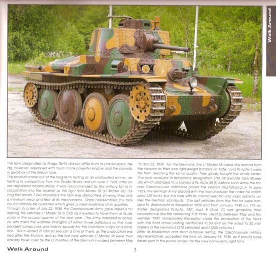 Der Band beginnt mit einigen schönen Gesamtansichten und einigem Text über die Entwicklungsgeschichte der 38(t)'s an sich und im speziellen wird auf das Modell in Lesany genauer eingegangen, das nämlich voll funktionsfähig ist.