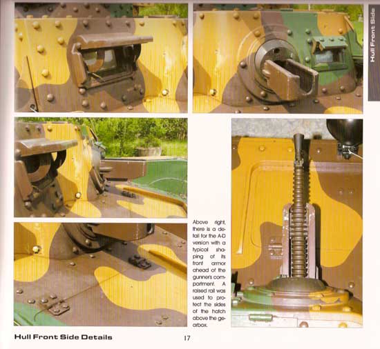 Wichtig und hochinteressant sind dann die Bilder mit dem aufgeklappten Motorraum und Detailfotos aus diesem. Ebenso wie die Innenraumfotos aus Turm und Wanne mit allen Details. Die Bilder sind allesamt mit englischem Text, der oft eine Reihe von Bildern zusammenfasst und von guter Bildqualität.