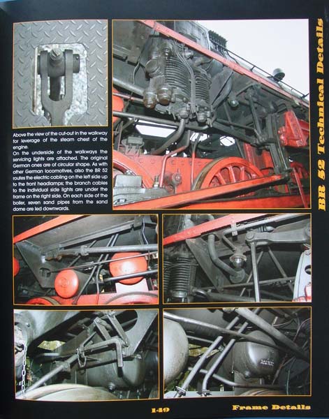 Alle Bereiche der Lok werden gruppiert auf verschiedenen Seiten genau gezeigt - so bekommt man gute Referenzansichten des Laufwerks, des Chassirahmens, der Kesseldetails, Führerhaus, Armaturen, Kupplungen, Leitungen, usw. usf.