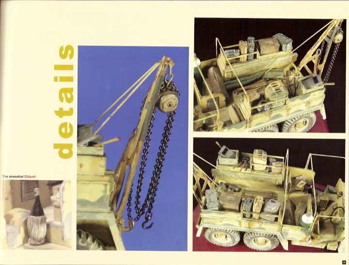 Jorge López präsentiert dann auf 6 Seiten seinen FAMO von Tamiya, der gut gebaut und dezent bemalt und gealtert wurde. Das ganze wurde auf ein kleines Stück Feldweg als Untergrund gestellt. Der Text erklärt einiges zum Modell, zur Bemalung und zur Grundplatte.