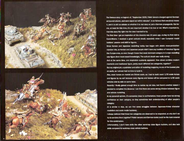 Auf 12 Seiten wird dann das "Best of Show" Diorama "The End of an Era" von Douglas Lee gezeigt. Ein wirklich unglaubliches Diorama einer angreifenden, polnischen Kavaleriegruppe gegen deutsche leichte Panzer! Neben der tollen Gestaltung ist auch die Bemalung extrem gut. Der Hammer dieses Dioramas entpuppt sich dann auf der letzten Seite, wo gezeigt wird, wie die Pferde aus Draht und Skulpturmasse selbst gemacht wurden!