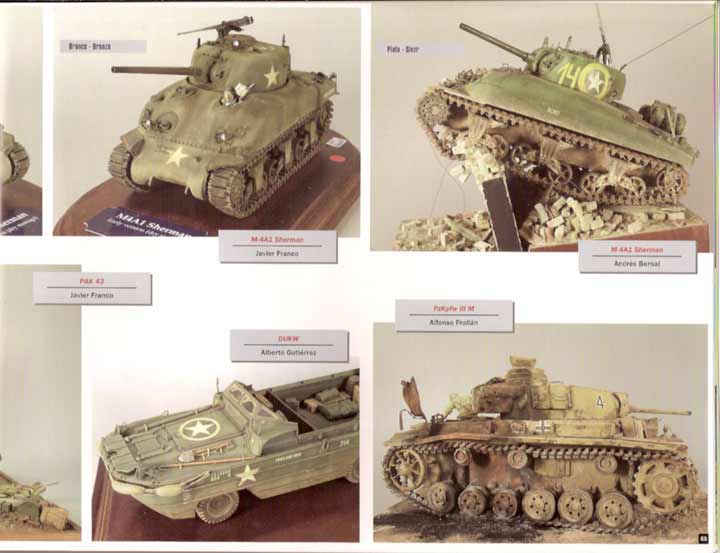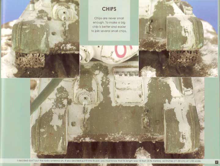 Die folgenden 10 Seiten werden dem exzellenten T-34/85 1943 von Jose A. Azorin gewidmet der sehr gut beschrieben und beim Bau gezeigt wird mit neuem Turm, Metallrohr, Zusatztanks, usw. Besonders interessant ist die Beschreibung und Photos zum Herstellen von abgeblätterter und abgeriebener Farbe.