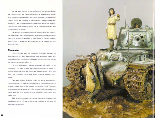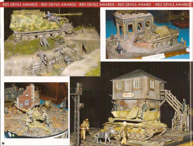 16 Seiten des fantastischen Dioramas "Enemy behind the Door" von Rubén González mit einer beschädigten SU-122, die an einem Fabrikgebäude vorbeifährt, in dem hinter der Tür die Deutschen lauern. Die ganze Machart des Dioramas und die ganzen Details sind hervorragend. Ganz toll auch die detailierten Schrit-für-Schritt Fotos der Bemalung und dezenten Alterung. Die folgenden 6 Seiten zeigen die 28cm K5(E) von Trumpeter, gebaut und bemalt von Luis Alho mit tollen Detailfotos und Text zur Historie und dem Modell. Auf weiteren 6 Seiten gibt es ein weiteres nettes Kleindiorama von Luciano Rodriguez über einen GMC CCKW mit vielen Tipps zur Alterung und Detailbemalung. Die nächsten 5 Seiten widmen sich dann einem 1/48 StuG III Ausf.G von Abilio Piniero - erstaunlich was man in diesem Maßstab alles machen kann. Stefano de Paolis zeigt auf weiteren 7 Seiten sein Modell des KV-1 Mod.1941. In dem Themenbereich "The Human Factor" zeigt Wim van Hool die Bemalung eines farbigen Soldaten der "Black Panthers" zusammen mit einer Farbtabelle für die einzelnen Bereiche der Figur mit Highlights und Schatten. Auf 9 Seiten werden dann tolle Modelle und Dioramen von den Red Devils Awards 2007 gezeigt - wieder oberlecker, was da präsentiert wird.