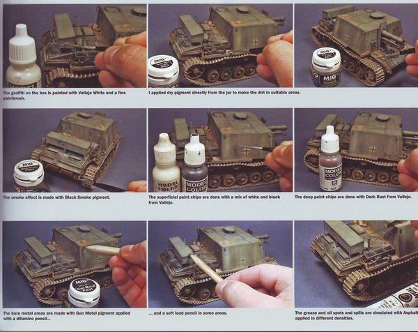 Zu Beginn gibt es einen neunseitigen Bericht über das s.I.G. 33 auf Panzer III Basis. Javier Redondo hat sich den alten Bausatz von Dragon vorgenommen, aufgewertet und ein sehenswertes Modell gebaut. Der Artikel enthält eine zweiseitige Schritt für Schritt Anleitung, wie das Modell bemalt wurde. Diese dürfte sowohl für Anfänger, als auch für Profis sehr hilfreich sein. Es folgt ein Baubericht von einem weiteren ungewöhnlichen Fahrzeug. Mit der Vignette 'Semper Fidelis' hat Emilien Pepin eine sehr schöne Vignette gebaut, bei dem ein LVT2 die Hauptrolle spielt. Auf 8 Seiten wird u.a. detailiert auf den Bau und die Bemalung eingegangen. Unterstützt wird dieser Bericht von sehr vielen tollen Photos. Weiter geht es mit einem umfangreichen Umbau eines deutschen Fahrzeuges. Domingo Hernández zeigt, wie man mit Hilfe diverser Zurüstsätze aus einem Steyr 1500 einen 'Steyr Type 2000A mit einer 2cm Flak 38' baut. Dieser Bericht erstreckt sich über 4 Seiten. Für Abwechslung sorgt nun der Bericht von einem modernen Fahrzeug. Ricardo Merino stellt auf 7 Seiten seinen 'T-54AM "Black Bear"' vor, welcher über eine interessante Farbgebung verfügt. Auch hier sind die Photos wieder erstklassig. Passend zum Thema gibt es auf den folgenden 6 Seiten von V. Alonso einen Bericht über 'AFV wrecks in Afghanistan'. Dieser Bericht ist eine tolle Inspirationsquelle für Modelle, da hier neben interessanten Tarnschemen auch jede Menge Wracks gezeigt werden. Der nun folgende Artikel 'Bogged Down' (7 Seiten) von Manel Arin zeigt einen festgefahrenen Tiger. Erstaunlich ist hierbei, dass sich bei Szene um ein Modell im Maßstab 1/48 handelt. Auch hier gibt es wieder einige sehr Photos und tolle Detailaufnahmen. Den Abschluss der Bauberichte bildet der Artikel 'Charming German' von Sven Frisch. Auf sechs Seiten beschreibt er den Bau eines Char 1 bis in deutschen Diensten. Hier gibt es wieder eine tolle Schritt für Schritt Sektion, in welcher die Bemalung/Alterung des Chars beschrieben werden. Zu guter Letzt gibt es noch einen recht ausführlichen Bericht (8 Seiten) von der Ausstellung im Panzermuseum Saumur im Jahre 2008. Den Abschluss dieses Heftes bildet noch eine kurze Besprechung von interessanten Neuheiten. Alles in allem bietet die Ausgabe 33 der Xtreme Modelling einen interessanten Streifzug durch das Hobby Militärmodellbau. Xtreme Modelling Hefte sind u.a. erhältlich bei: