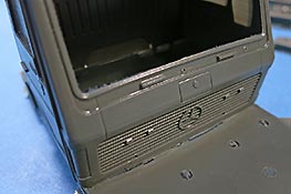 Die Kabineninneneinrichtung beinhaltet alles, was wichtig ist: Sitze in schöner Darstellung, Armaturenbrett, Lenkrad, Schaltknüppel, Türinnentaschen, usw. Der Kabinenboden zeigt schöne Details, insbeondere der markanten Rippung im Bereich der Fußstellplätze Fahrer und Beifahrer.