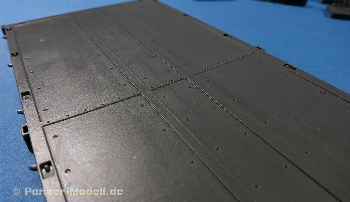 Die Ladefläche sieht richtig gut aus - vor allem sauber und verzugsfrei gegossen mit feinsten Details der Stahllladefläche mit Vertiefungen, Rippen und Zurrösen.