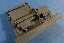 Der Bausatz enthält auch den kompletten und recht detaillierten Motor mit sämtlichen Anbauteilen mit Antriebsstrang, Getriebe und Auspuffsystem. So kann der geneigte Modellbauer das Modell auch mit gekippter Kabine mit Blick auf den Motor realisieren.