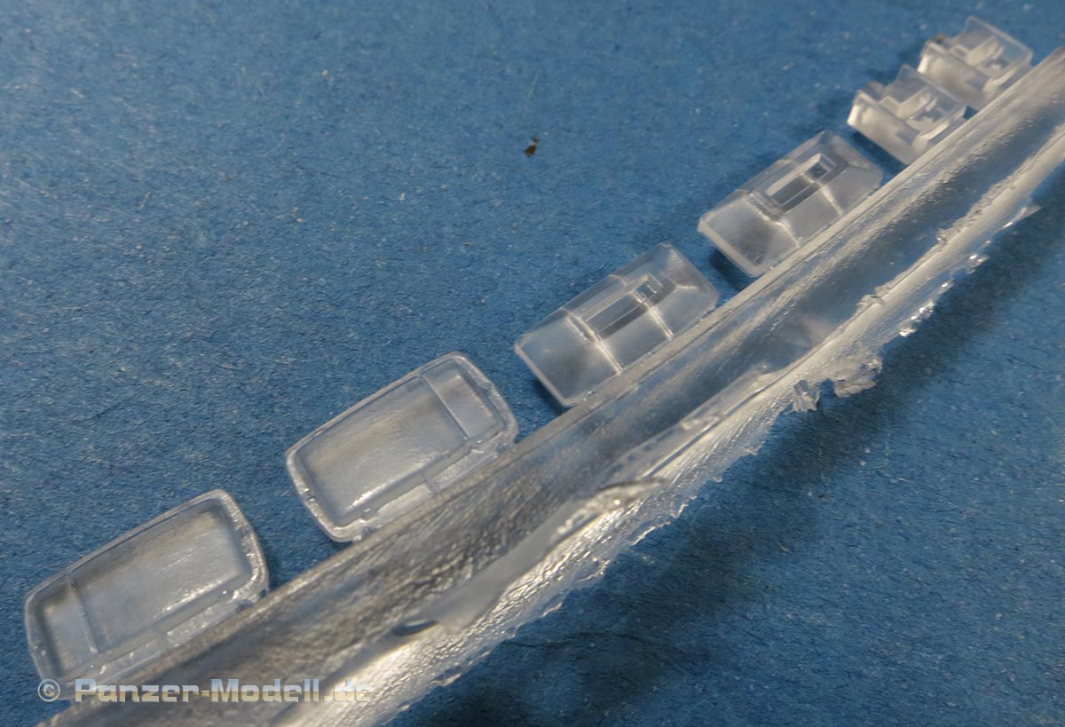 Alle Teile sind sauber und fehlerfrei und ohne Luftblasen gegossen und machen einen ausgezeichneten Eindruck. Hier und da müssen ein paar Fischhäute zwischen den Bauteilen entfernt werden, was aber recht einfach und schnell erledigt ist.