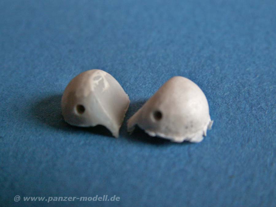Hinter dieser doch recht witzigen Bezeichnung verbergen sich zwei Resinteile, die die seitlichen Erhebungen zur Aufnahme des Entfernungsmessers darstellen. Wie die anderen Sets von Zitader auch ist dieses auch nur für Fahrzeuge geeignet, die noch im Planungsstadium waren. Genauer gesagt ist dieses Set für Tamiya und Dragon Tiger II mit Henschelturm - diese sollten ab Juli 1945 einen Raumbildentfernungsmesser erhalten und damit diese beiden "Beulen" an den Turmseiten erhalten.